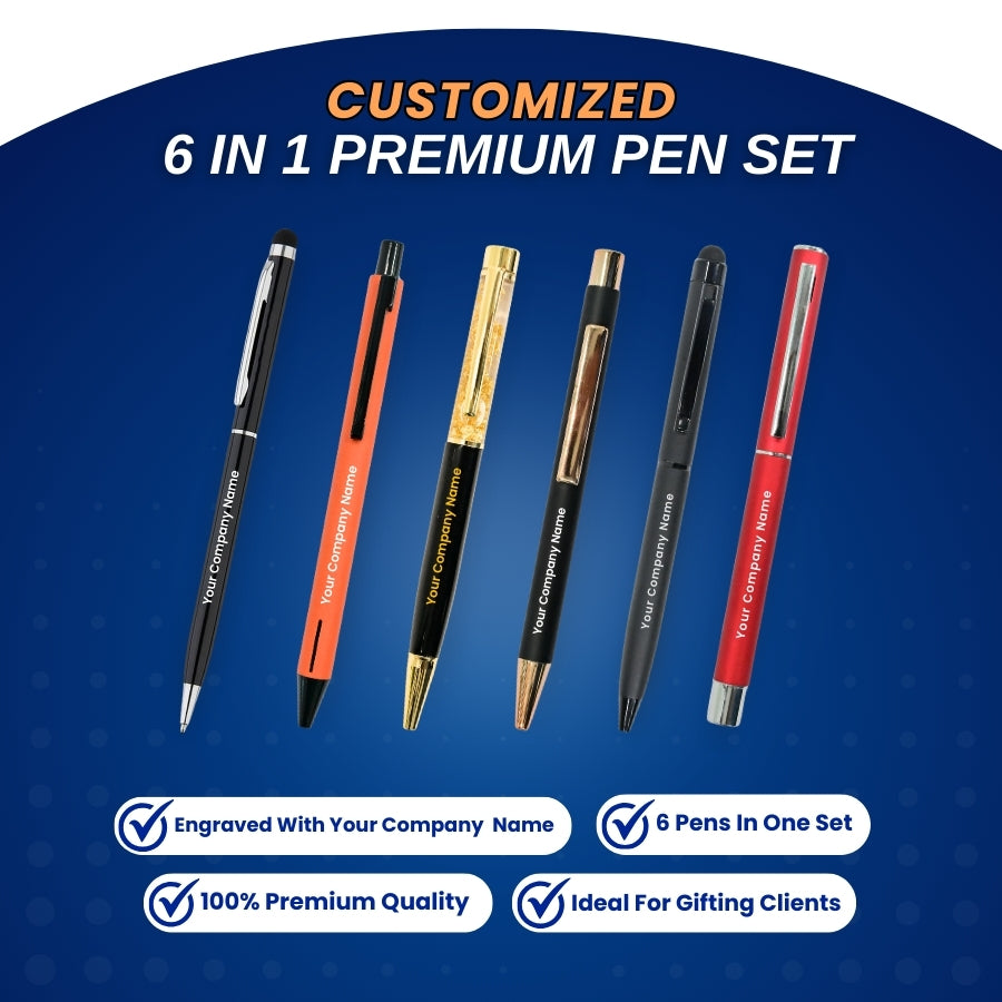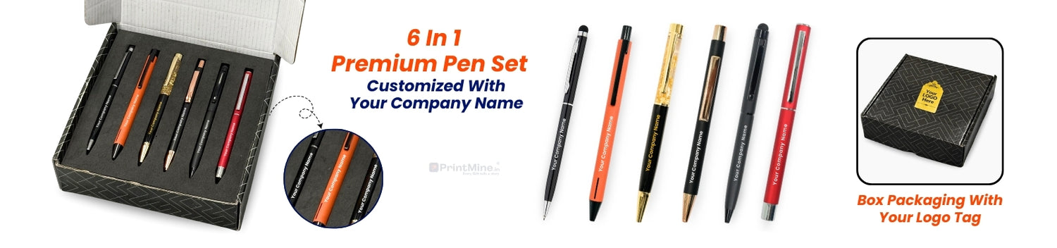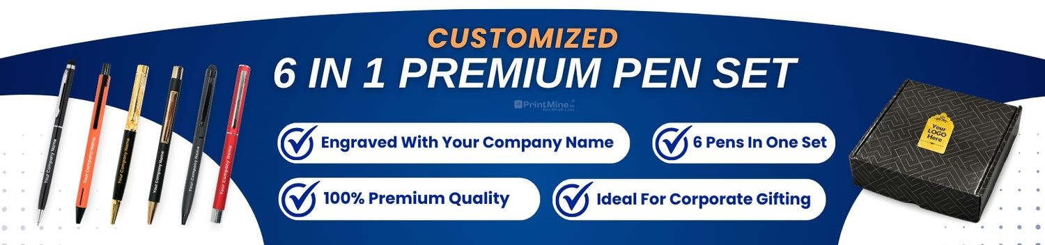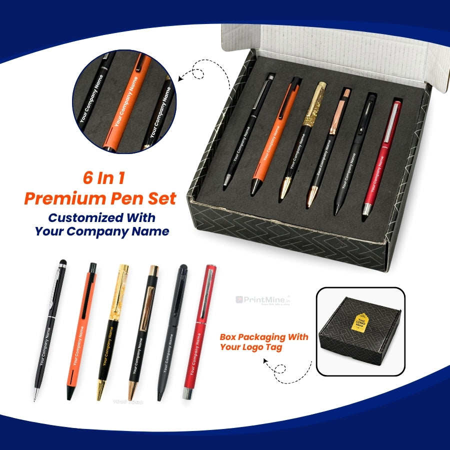 Premium Pen Set - 6 in 1 | With Your Company Name | Best for Corporate Gifting | PrintMine.in