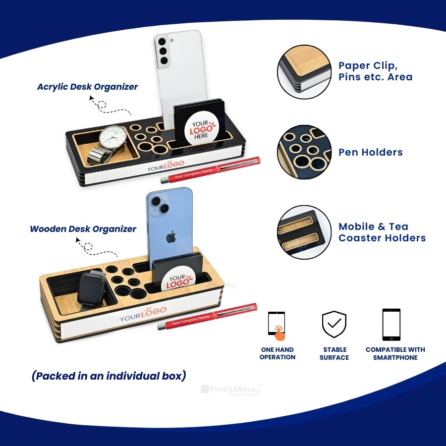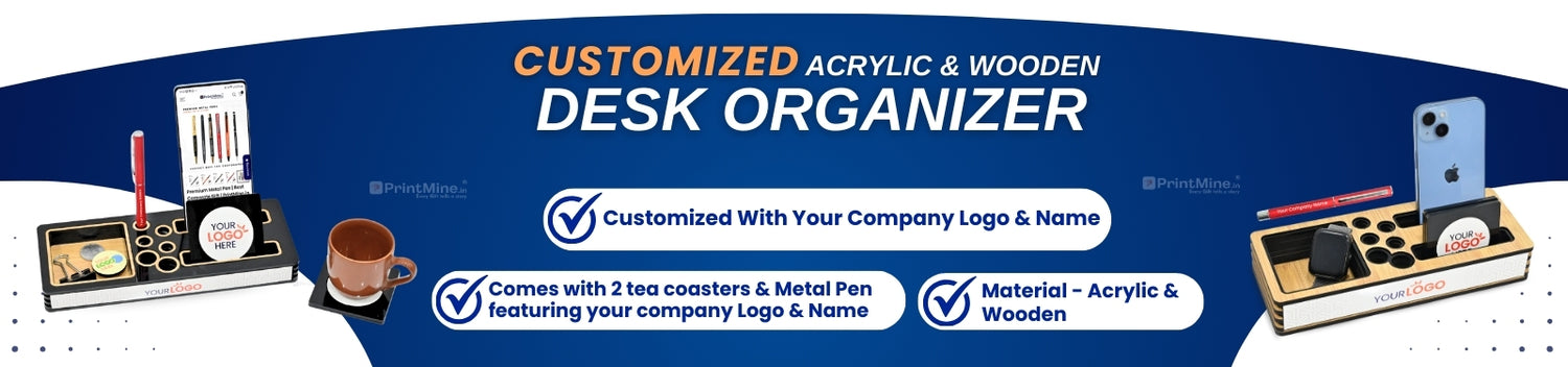 Premium Desk Organizer (with Metal Pen & 2 Tea Coasters) | Best for Corporate Gifting | PrintMine.in